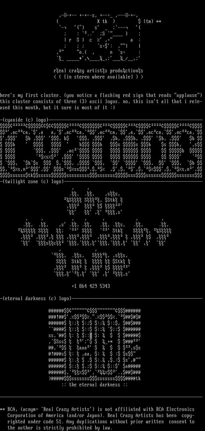this cluster consists of three 3 ascii logos. no, this isnt all that i rele-