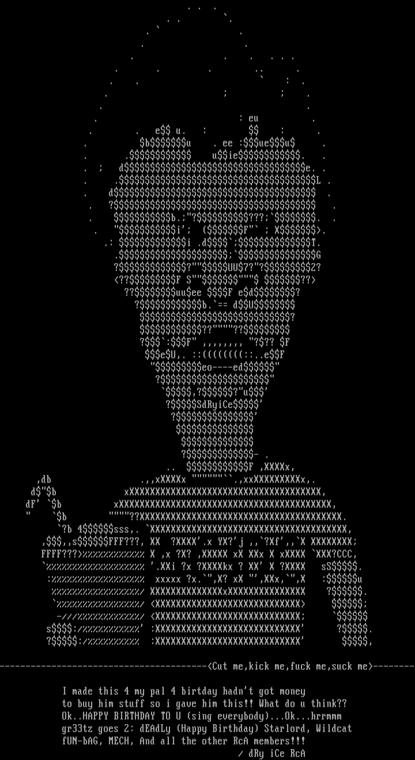 gr33tz goes 2: dEAdLy Happy Birthday Starlord, Wildcat