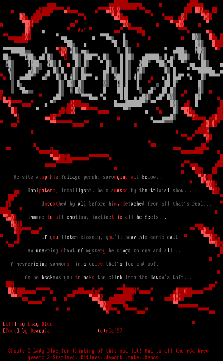 -------------------------------------------------------------------------------- Shouts 2 Lady Blue for thinking of this mad lit! And to all the rCa krew