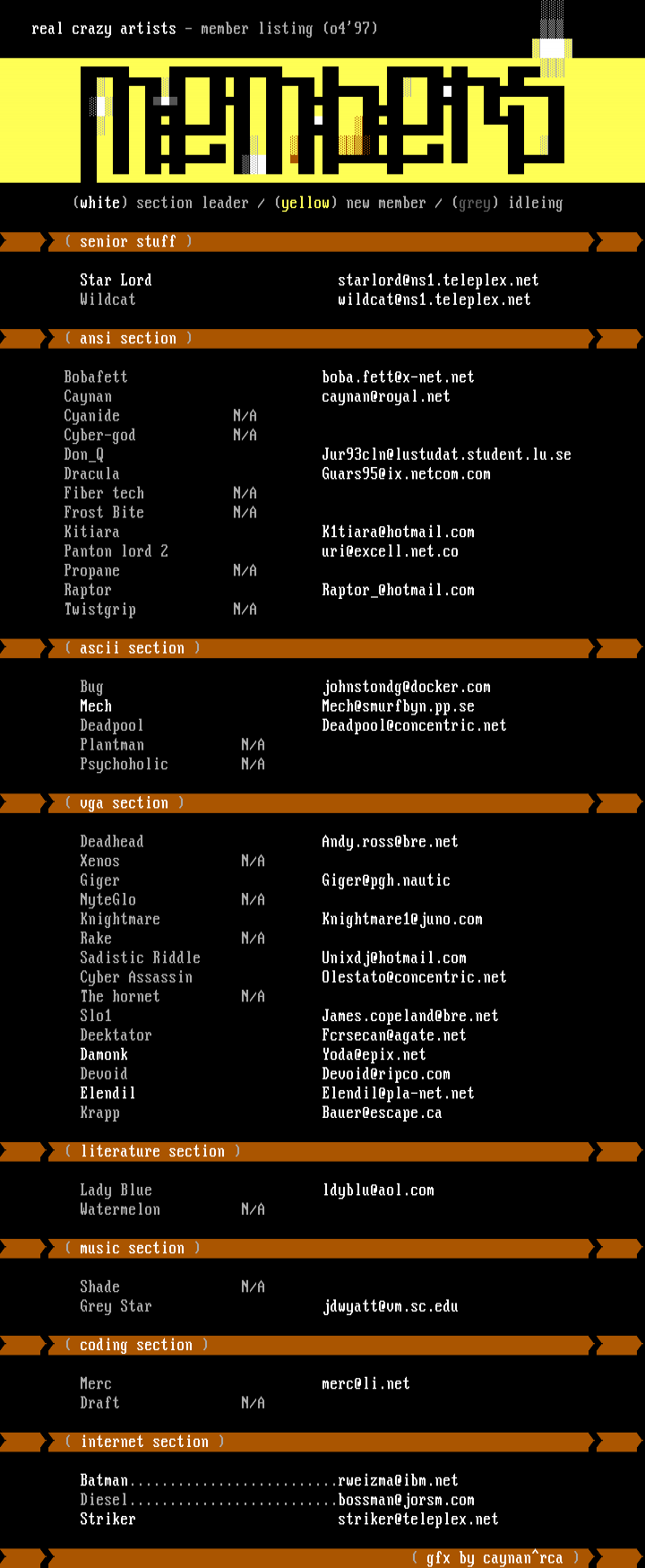 real crazy artists - member listing o497