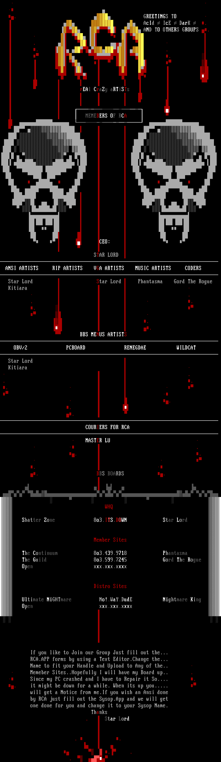 ANSI ARTISTS RIP ARTISTS VGA ARTISTS MUSIC ARTISTS CODERS