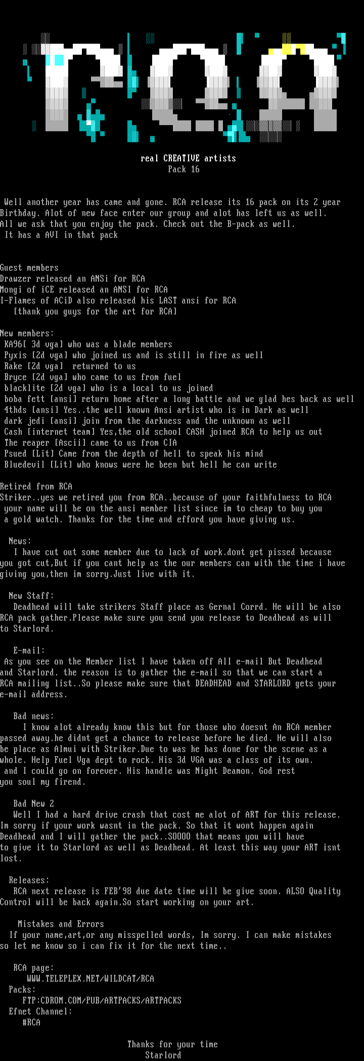 I-Flames of ACiD also released his LAST ansi for RCA