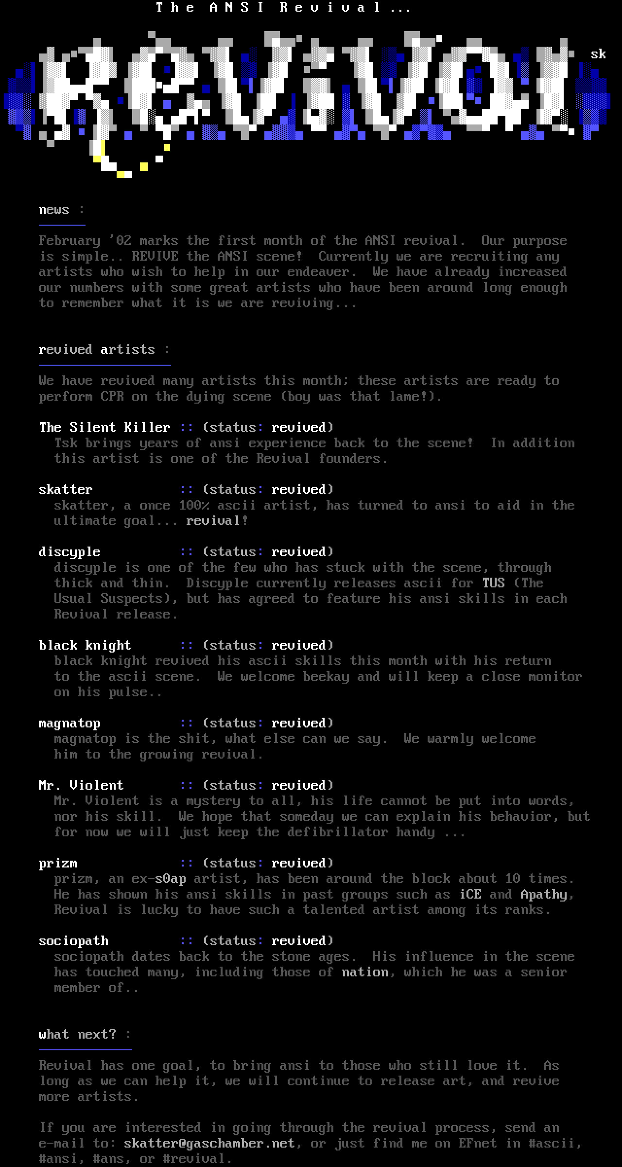 skatter, a once 100 ascii artist, has turned to ansi to aid in the