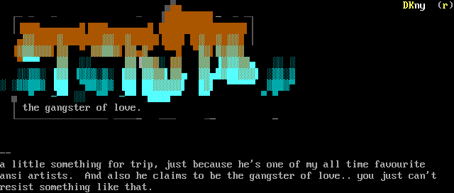 ansi artists. And also he claims to be the gangster of love.. you just cant