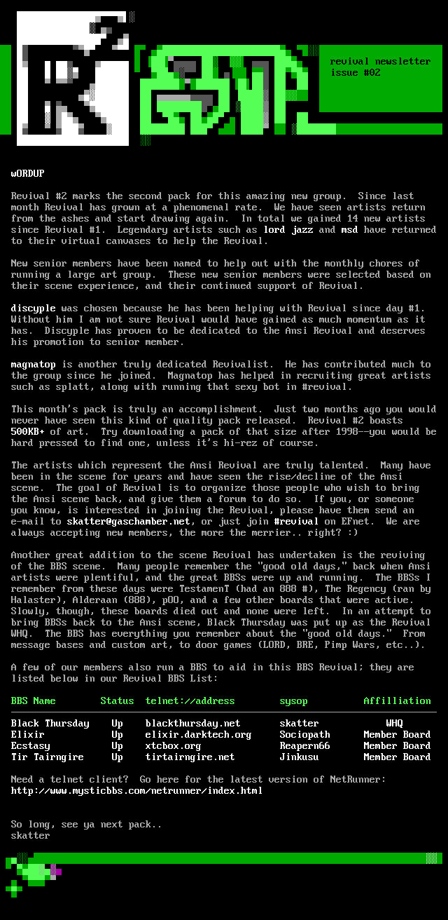 bring BBSs back to the Ansi scene, Black Thursday was put up as the Revival