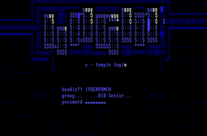 : gggg ggggg : : : gggggg l g :...... : : : ..... l x - temple login i : : :..........: : i: : : : . : : . . . . . . . . . . .....: : : : : . : : : : handle?! YBERPUNCH : : : : . group... ...RiB Senior... . : : ....: . password : : ....: : . ......... . ............: :