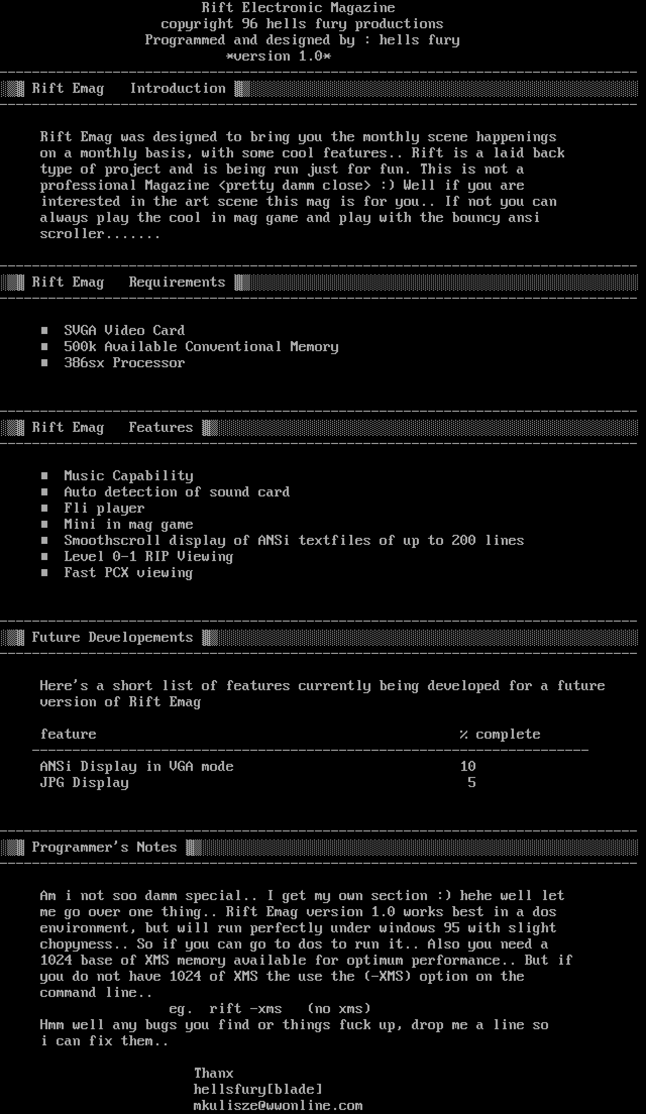 me go over one thing.. Rift Emag version 1.0 works best in a dos