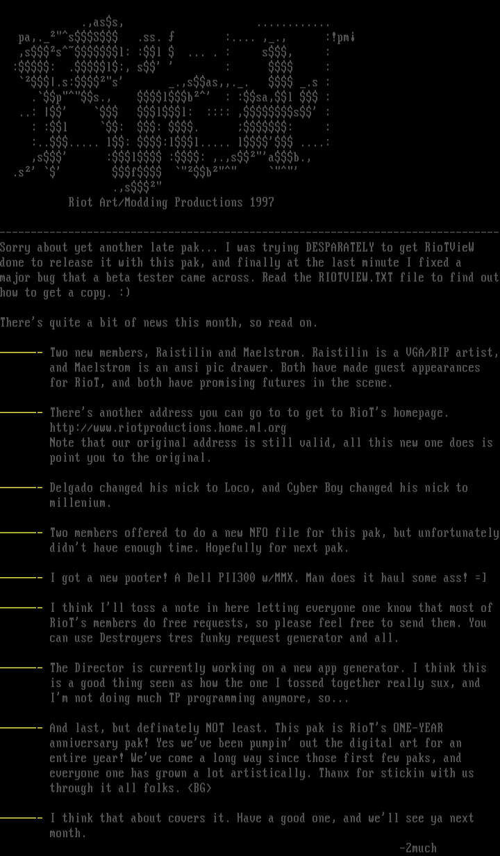 Riot Art/Modding Productions 1997