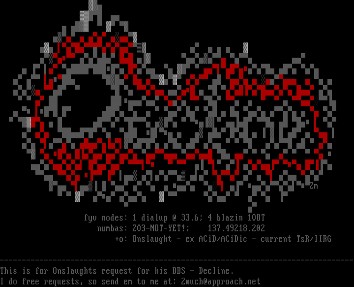 --------------------------------------------------------------------------------This is for Onslaughts request for his BBS - Decline.