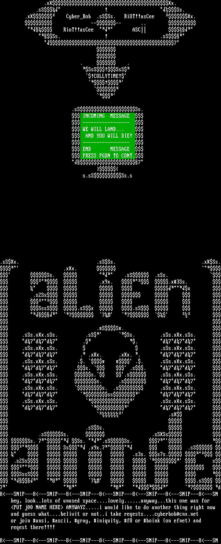 or join ansi, ascii, gray, iniquity, f8 or boink on efnet and