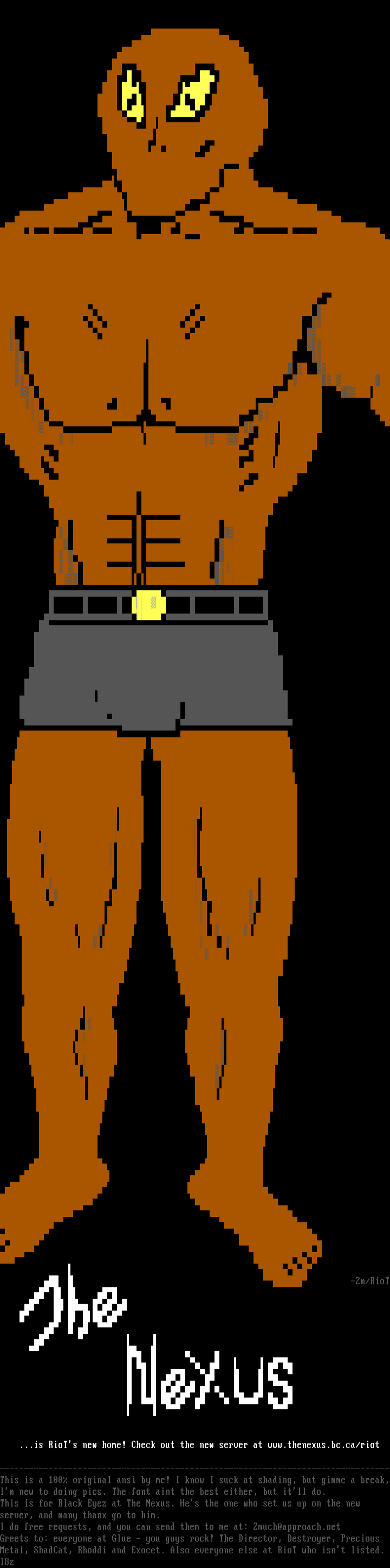--------------------------------------------------------------------------------This is a 100 original ansi by me! I know I suck at shading, but gimme a break,Im new to doing pics. The font aint the best either, but itll do.