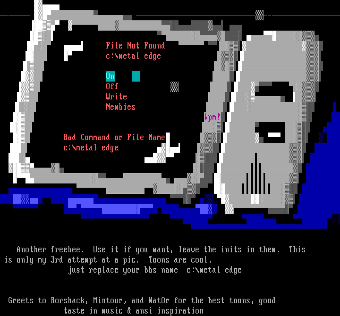 Greets to Rorshack, Mintour, and WatOr for the best toons, good