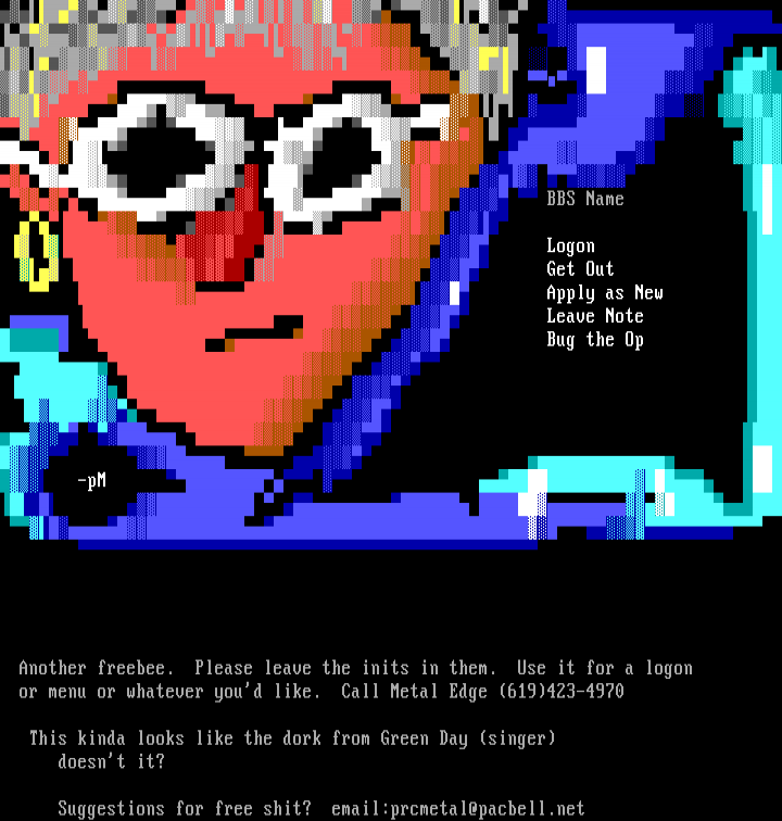 BBS Name Logon Get Out Apply as New Leave Note Bug the Op -pM