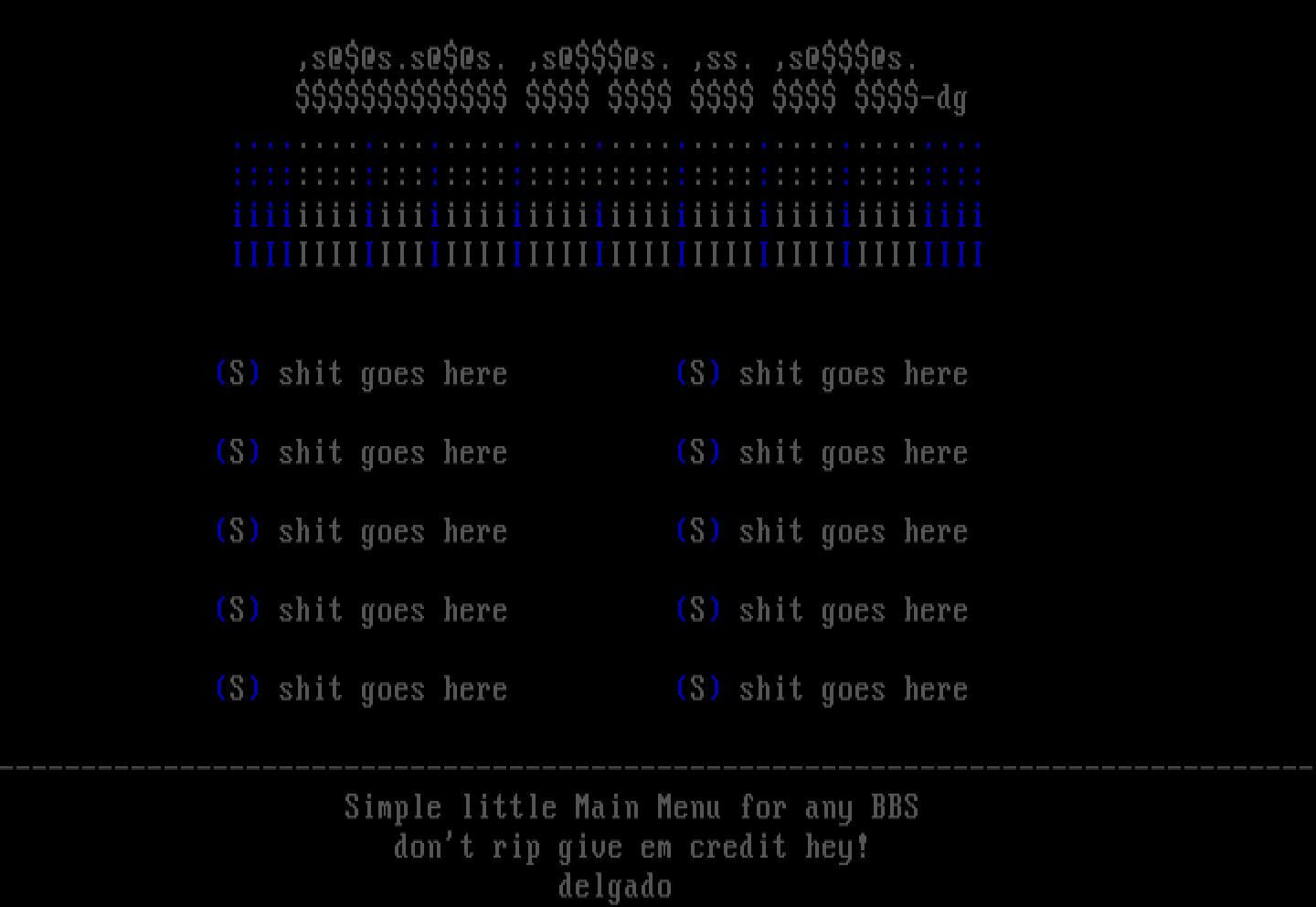 -------------------------------------------------------------------------------- Simple little Main Menu for any BBS