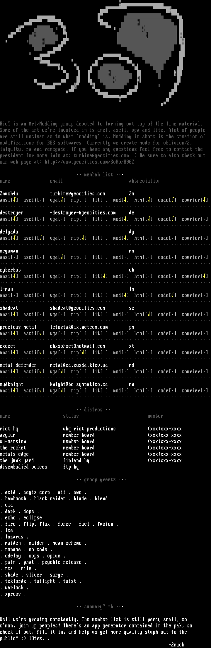 Some of the art were involved in is ansi, ascii, vga and lits. Alot of people