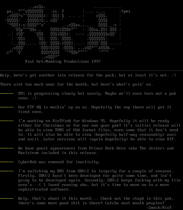 Riot Art/Modding Productions 1997