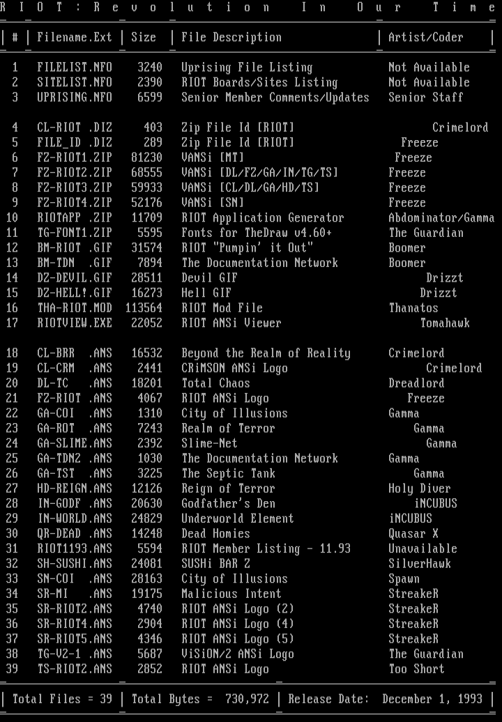 2 SITELIST.NFO 2390 RIOT Boards/Sites Listing Not Available