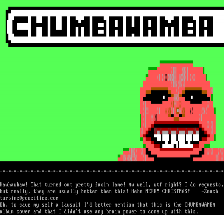 Hawhawhaw! That turned out pretty fuxin lame! Aw well, wtf right? I do requests,but really, they are usually better then this! Hehe MERRY CHRISTMAS! -2much