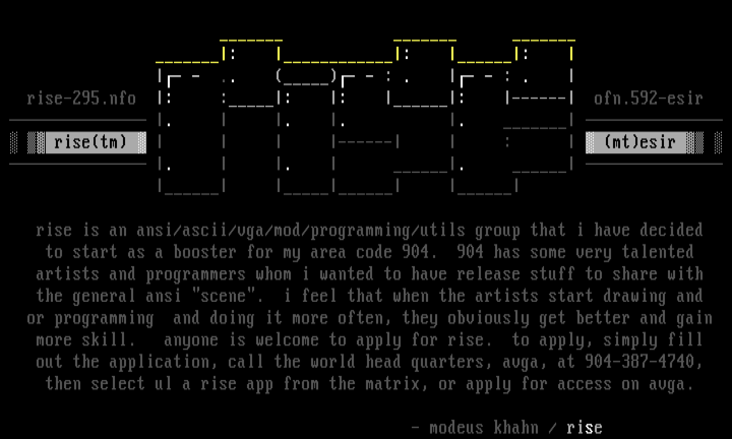 rise is an ansi/ascii/vga/mod/programmi