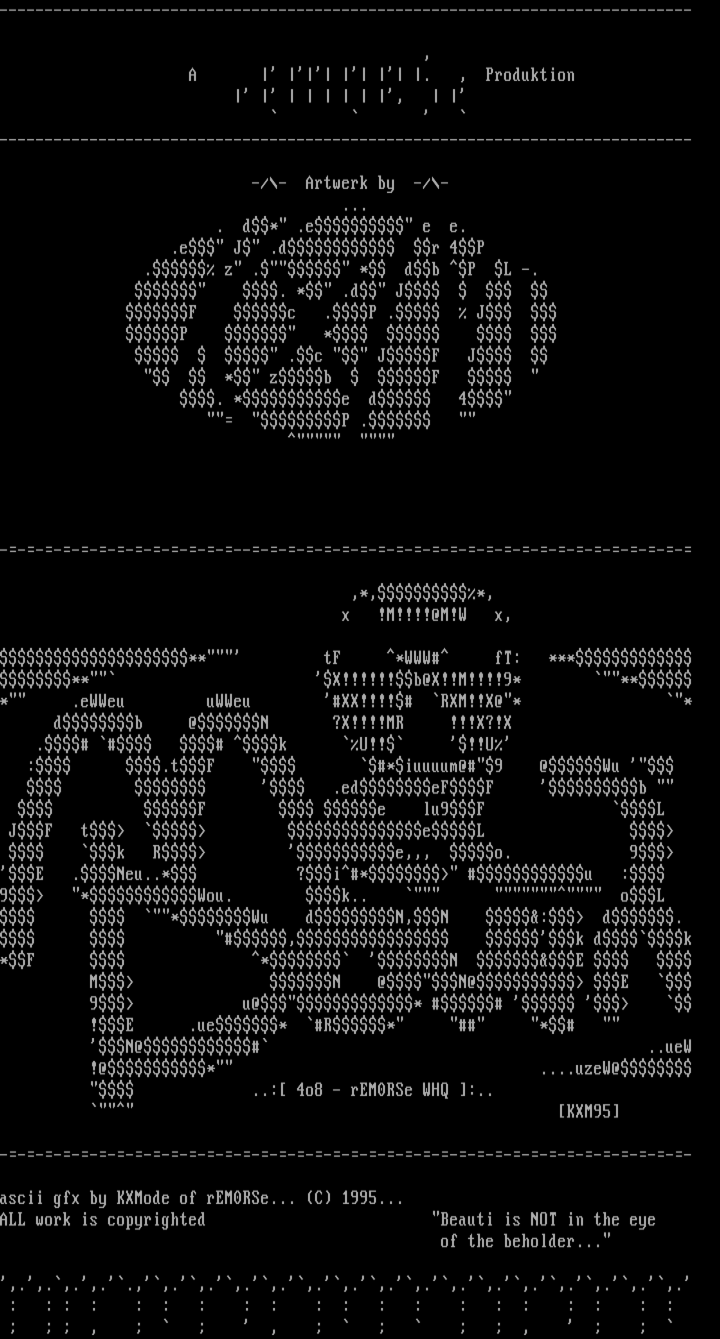 ascii gfx by KXMode of rEM0RSe... C 1995...