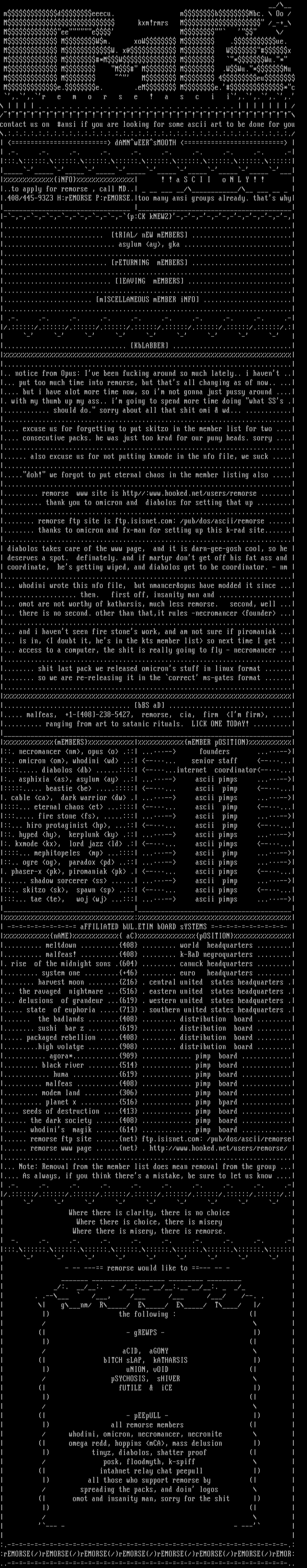 .408/445-9323 H:rEMORSE P:rEMORSE.too many ansi groups already. thats why