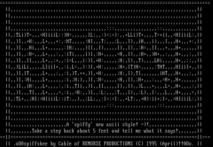 .oO0spiffskee by Cable of REMORSE PRODUCTIONS C 1995 April!!0Oo.