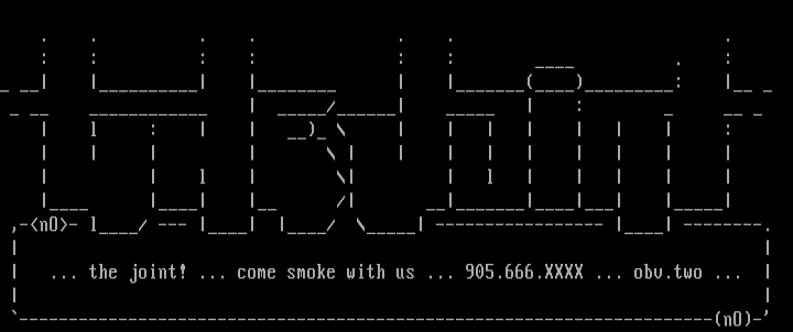 ... the joint! ... come smoke with us ... 905.666.XXXX ... obv.two ...