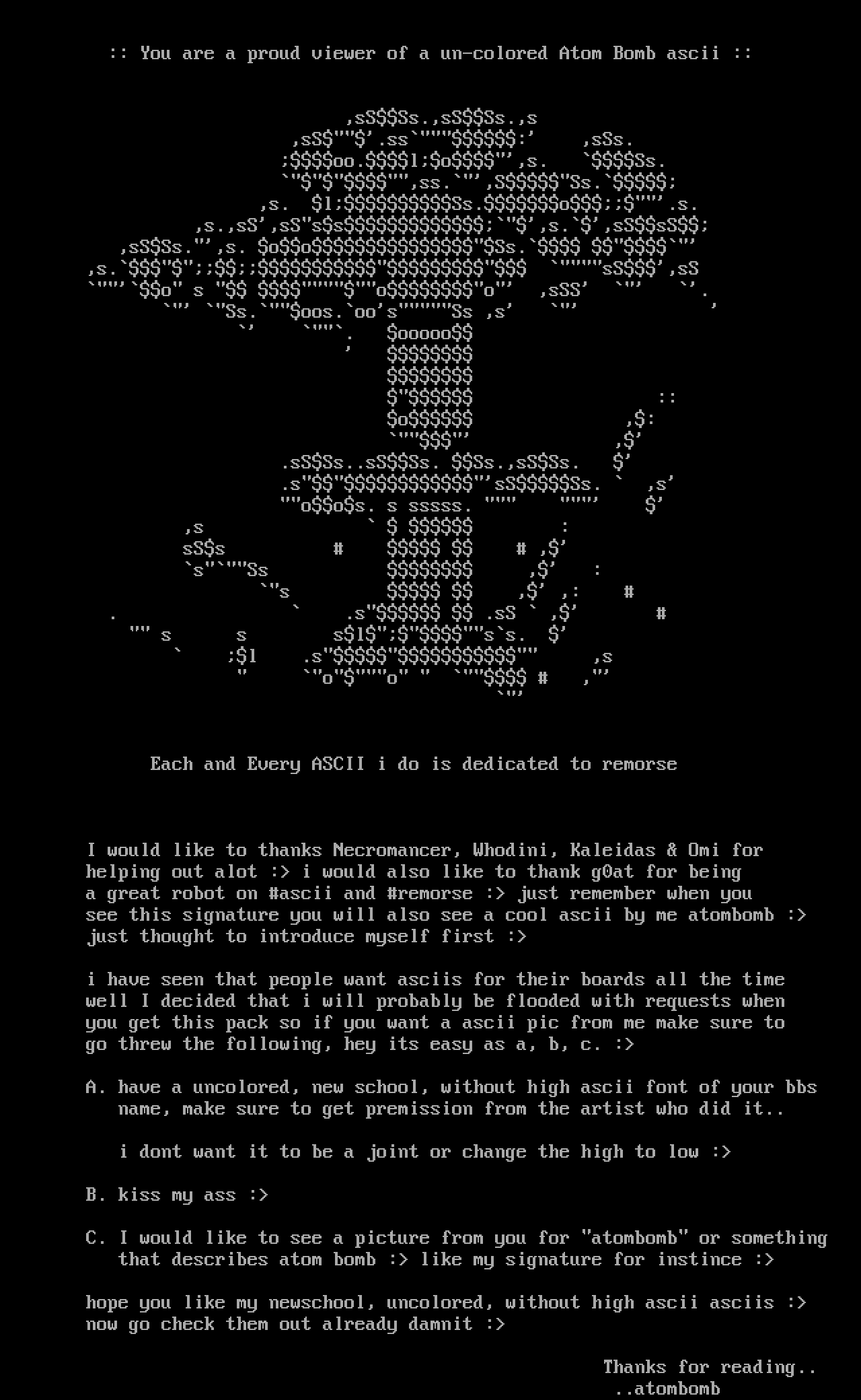 :: You are a proud viewer of a un-colored Atom Bomb ascii ::