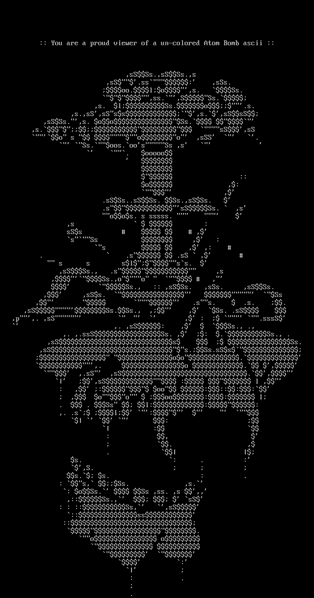 :: You are a proud viewer of a un-colored Atom Bomb ascii ::