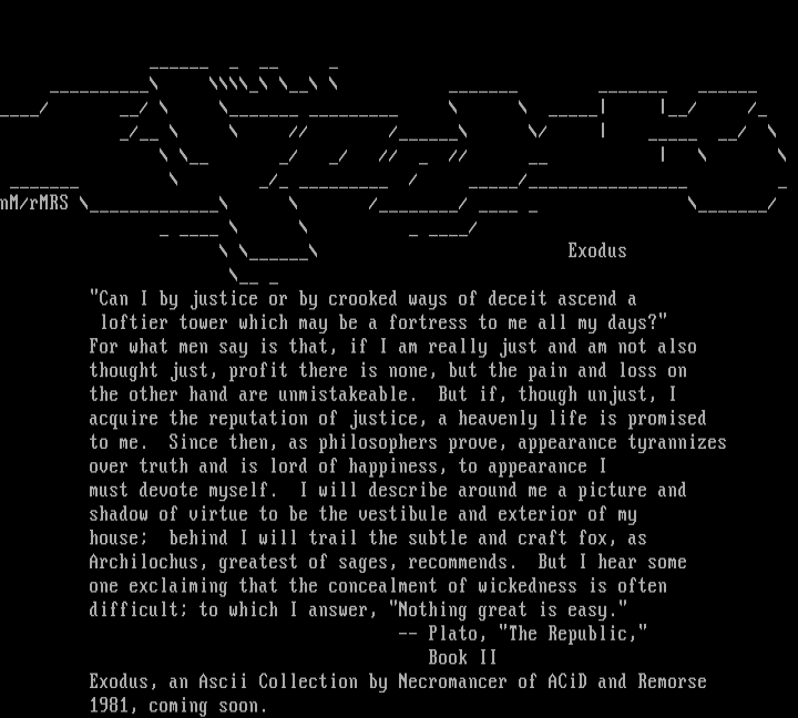 Exodus, an Ascii Collection by Necromancer of ACiD and Remorse