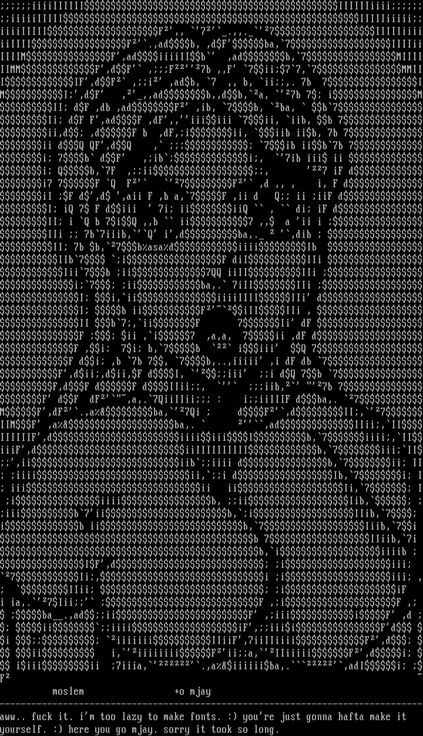 --------------------------------------------------------------------------------aww.. fuck it. im too lazy to make fonts. : youre just gonna hafta make it