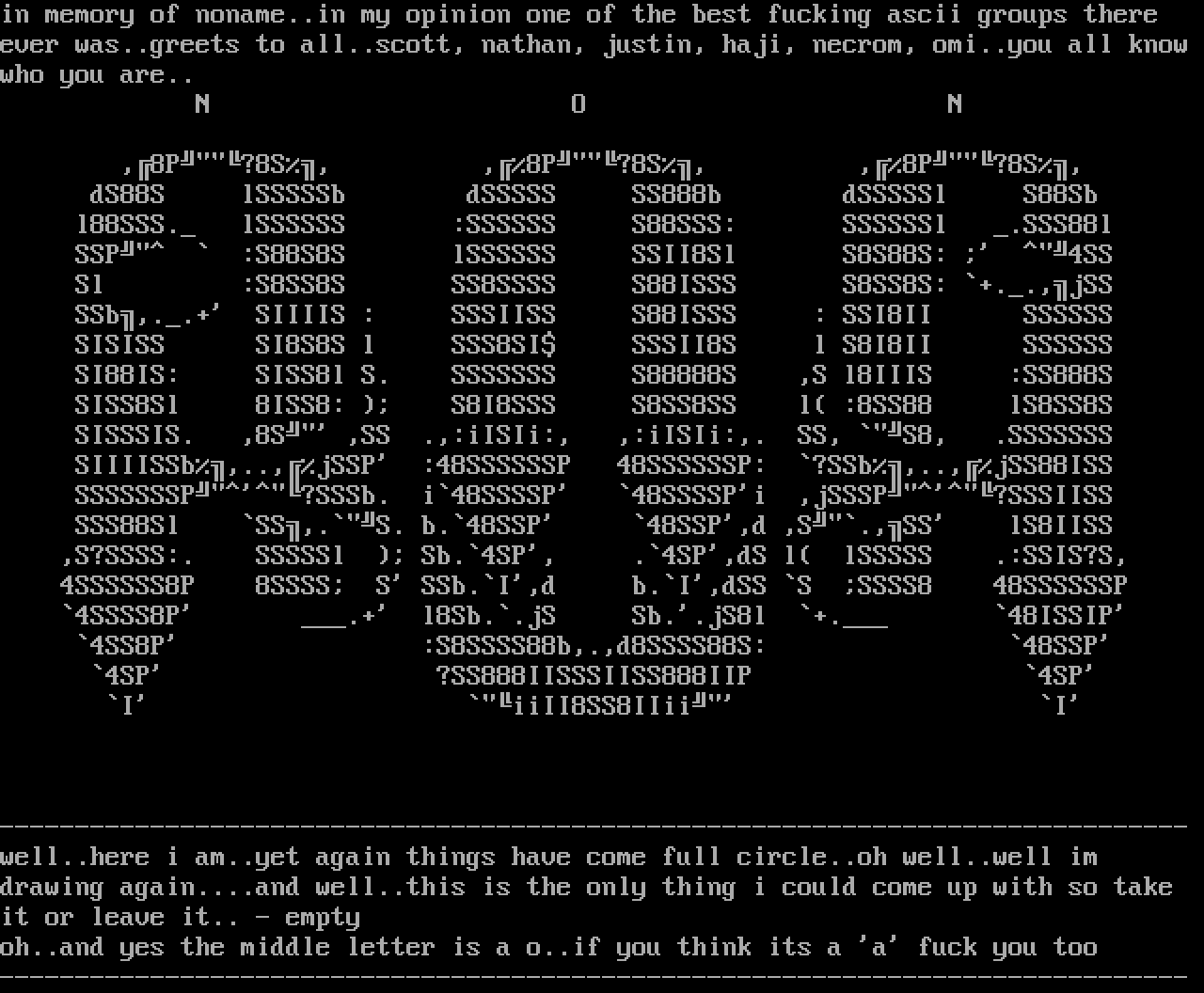 in memory of noname..in my opinion one of the best fucking ascii groups there