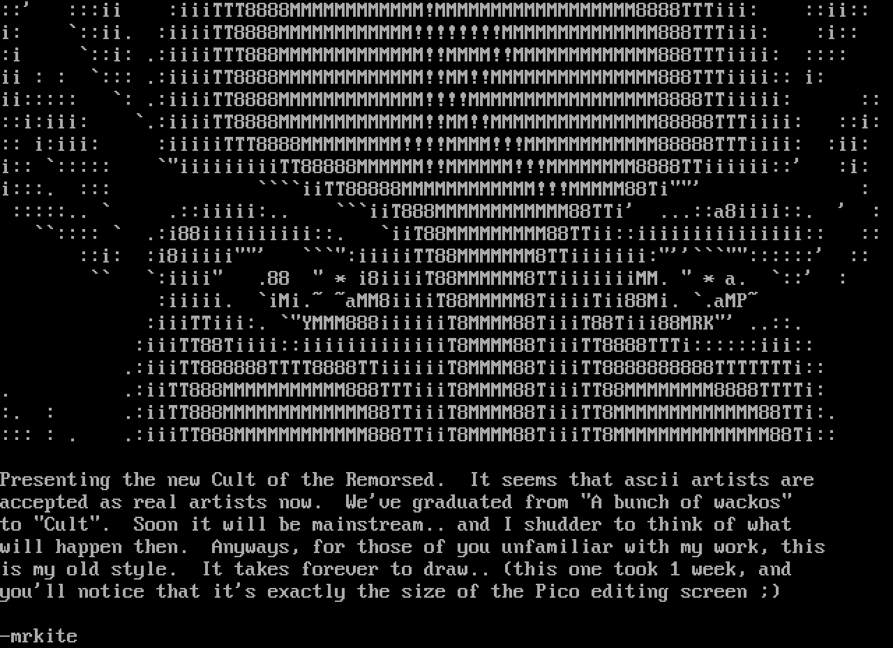 Presenting the new Cult of the Remorsed. It seems that ascii artists are