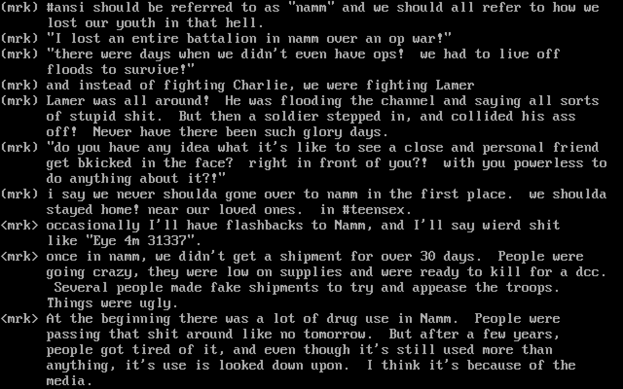 mrk occasionally Ill have flashbacks to Namm, and Ill say wierd shit