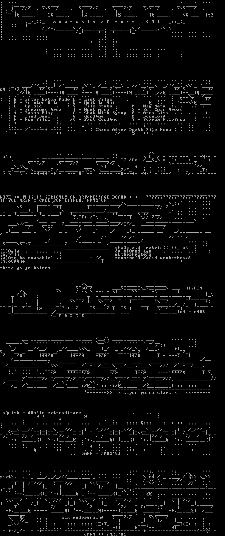 : + - Batch Flag .: C - Chat With Sysop A - Area List . ..:. . + :