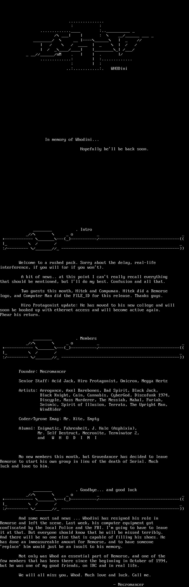 Two guests this month, Hitek and Compuman. Hitek did a Remorse