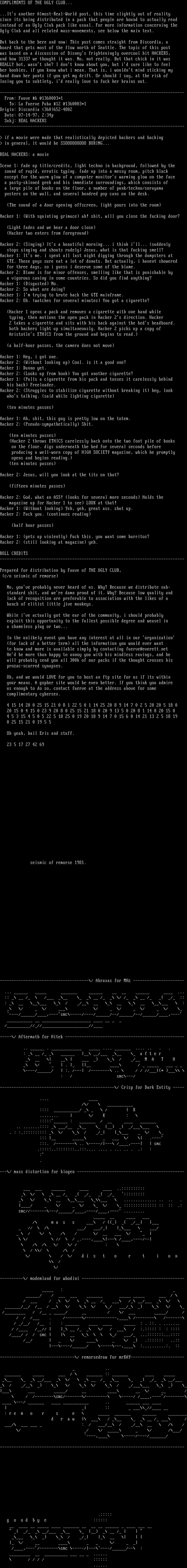 Hacker 1: With squinting grimace ah! shit, will you close the fucking door?