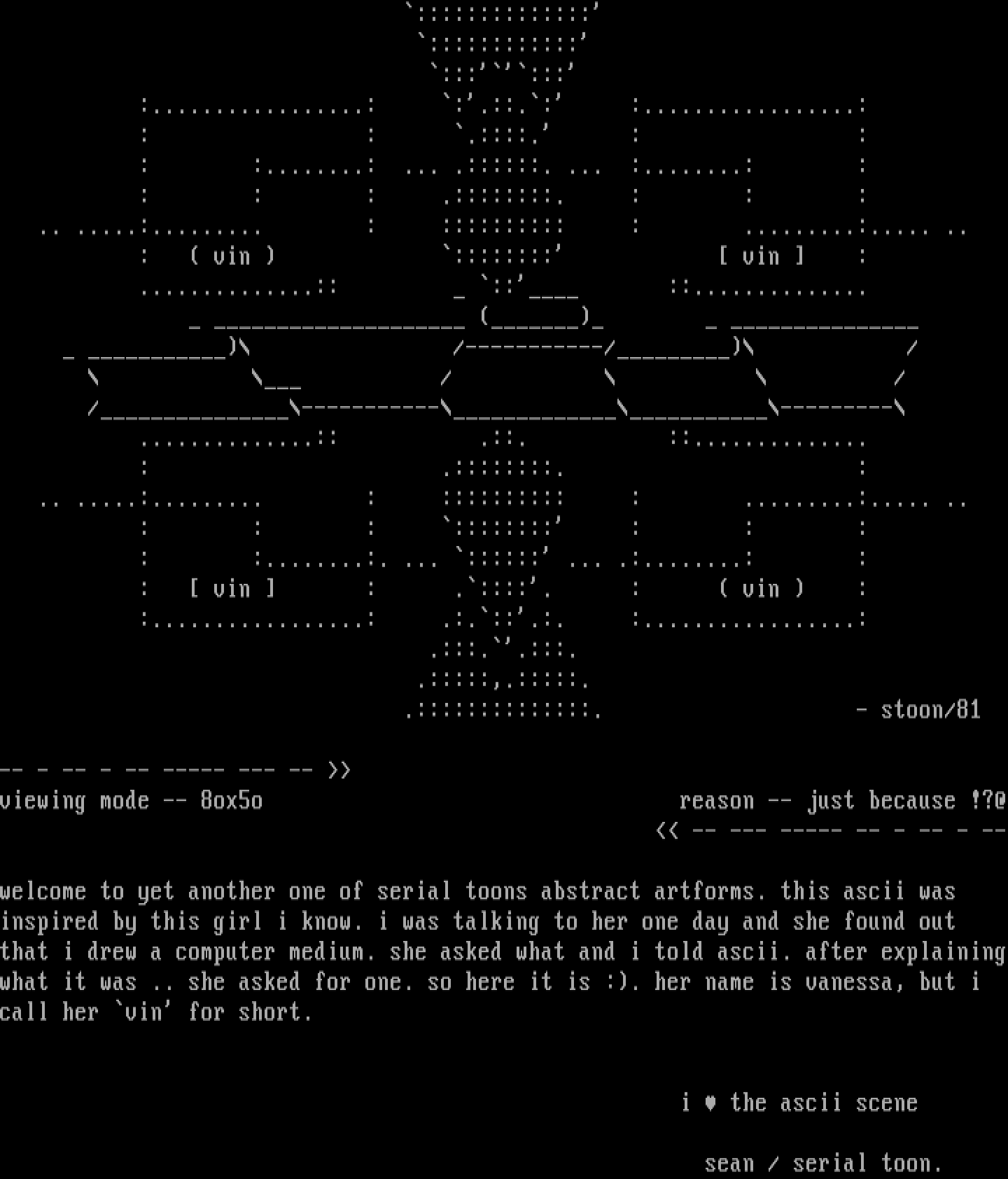 welcome to yet another one of serial toons abstract artforms. this ascii was