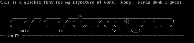 this is a quickie font for my signature at work. woop. kinda dumb i guess.