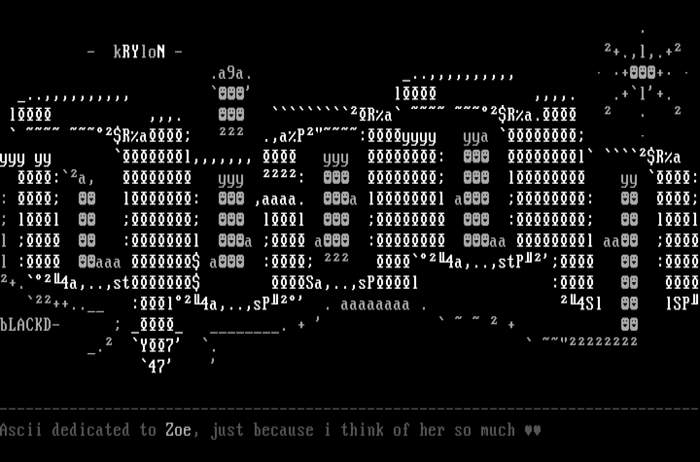 --------------------------------------------------------------------------------Ascii dedicated to Zoe, just because i think of her so much