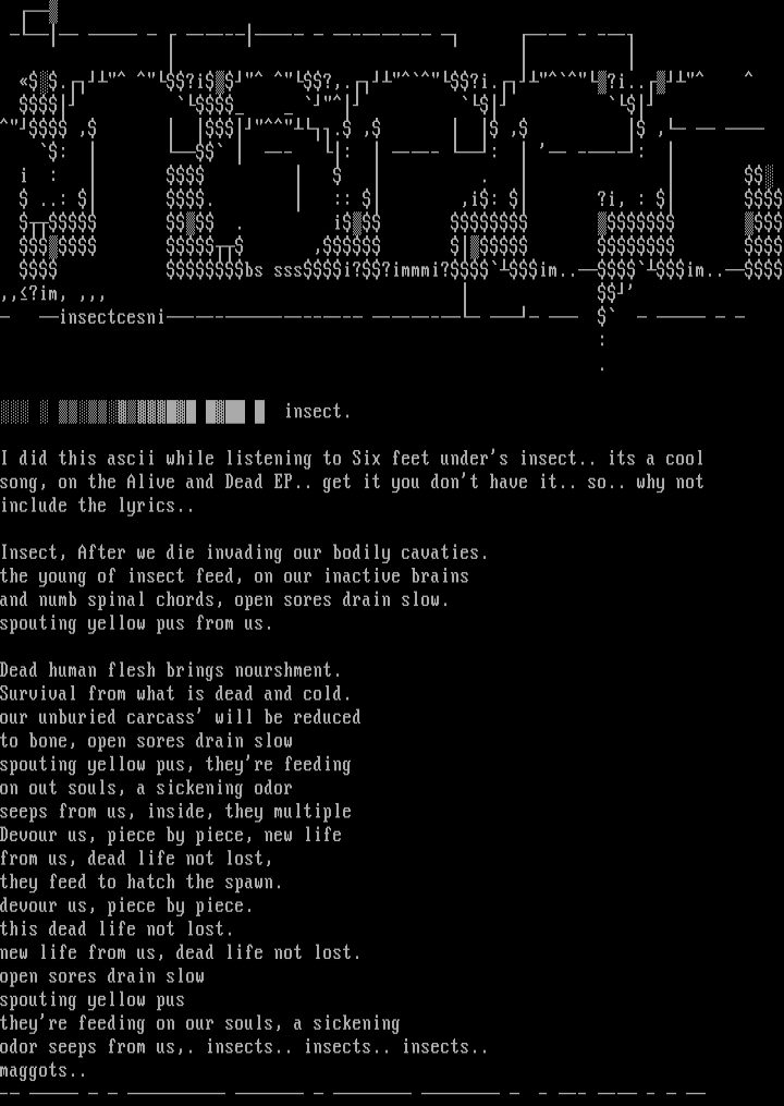 I did this ascii while listening to Six feet unders insect.. its a cool