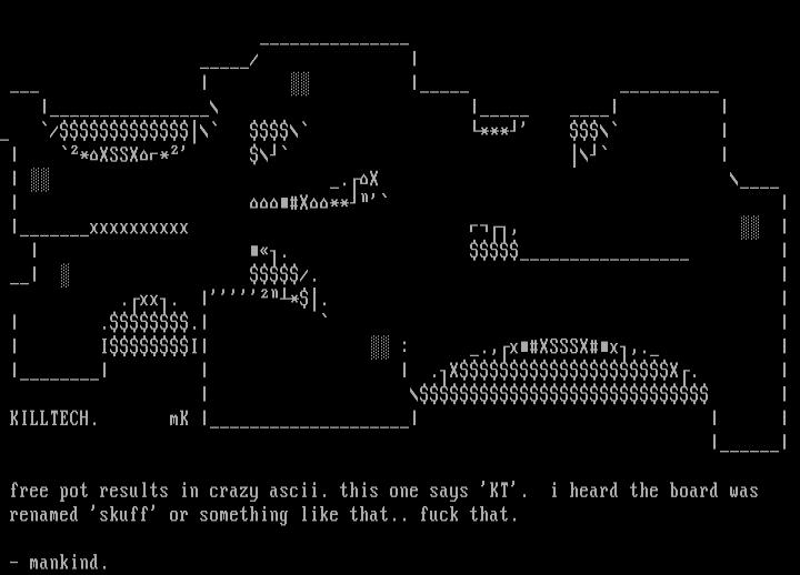 free pot results in crazy ascii. this one says KT. i heard the board was