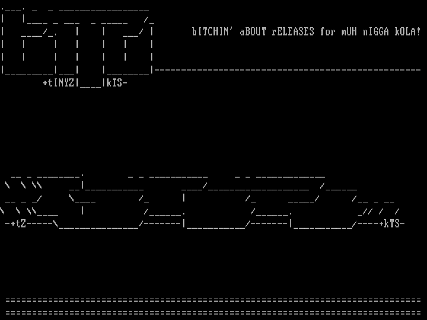 /. / bITCHIN aBOUT rELEASES for mUH nIGGA kOLA!