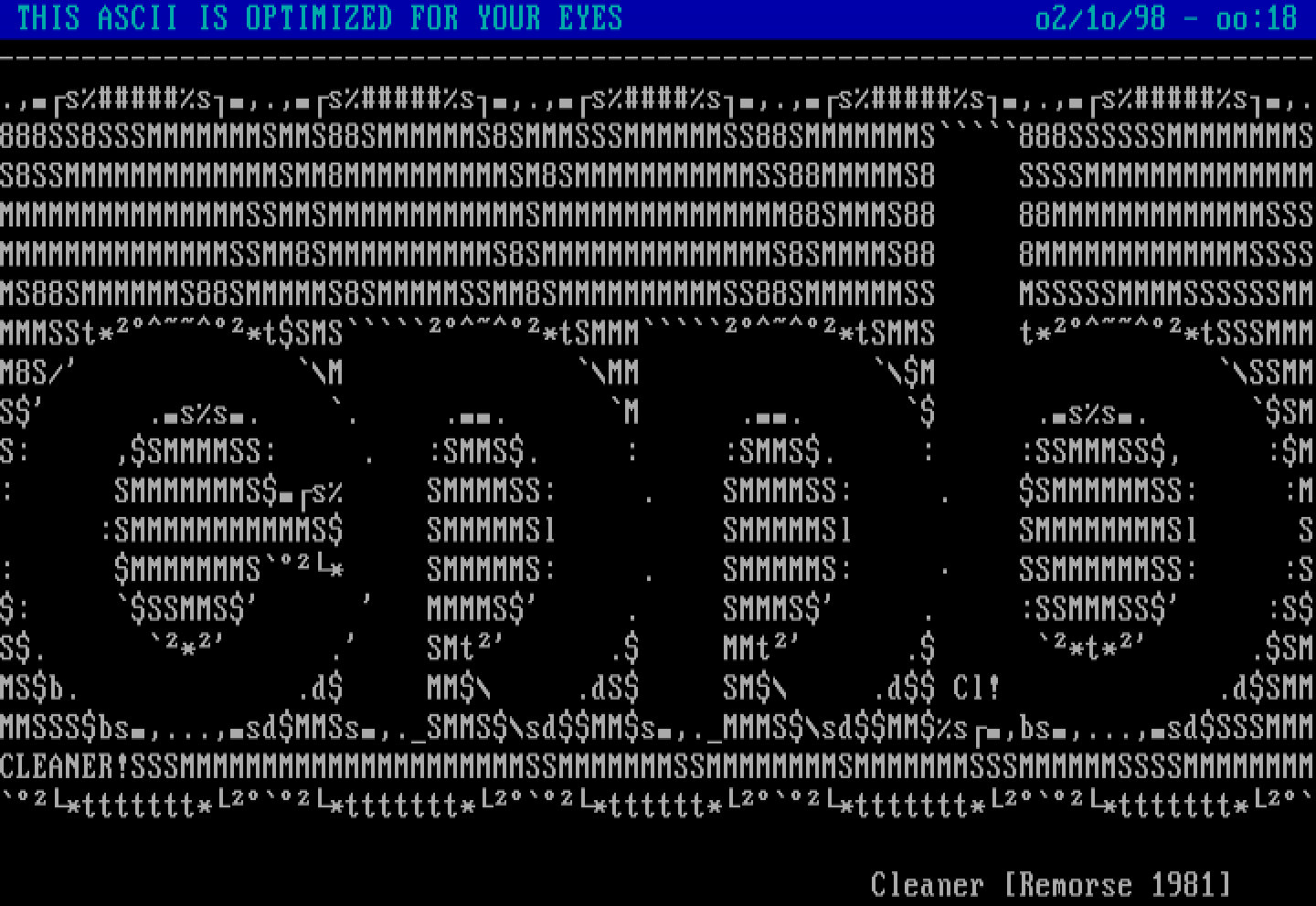 THIS ASCII IS OPTIMIZED FOR YOUR EYES o2/1o/98 - oo:18