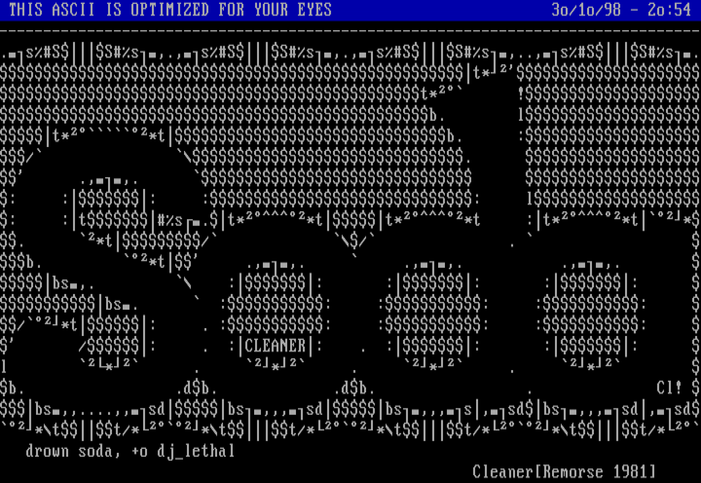 --------------------------------------------------------------------------------.sSSs,.,sSSs,.,sSSs,..,sSSs.t*t* !b. lt**tb. :/ . .,,. : :: :: l: :ts.t**tt**t :t**t*. *t/ / . b. *t .,,. .,,. .,,. bs,. :: :: :: bs. :: :: :: /*t: . :: :: :: /: . :CLEANER: . :: :: l * . * . * . * b. .db. .db. . Cl! bs,,....,,sdbs,,,sdbs,,,s,sdbs,,,sd,sd*tt/**tt/**tt/**tt/* drown soda, +o djlethal