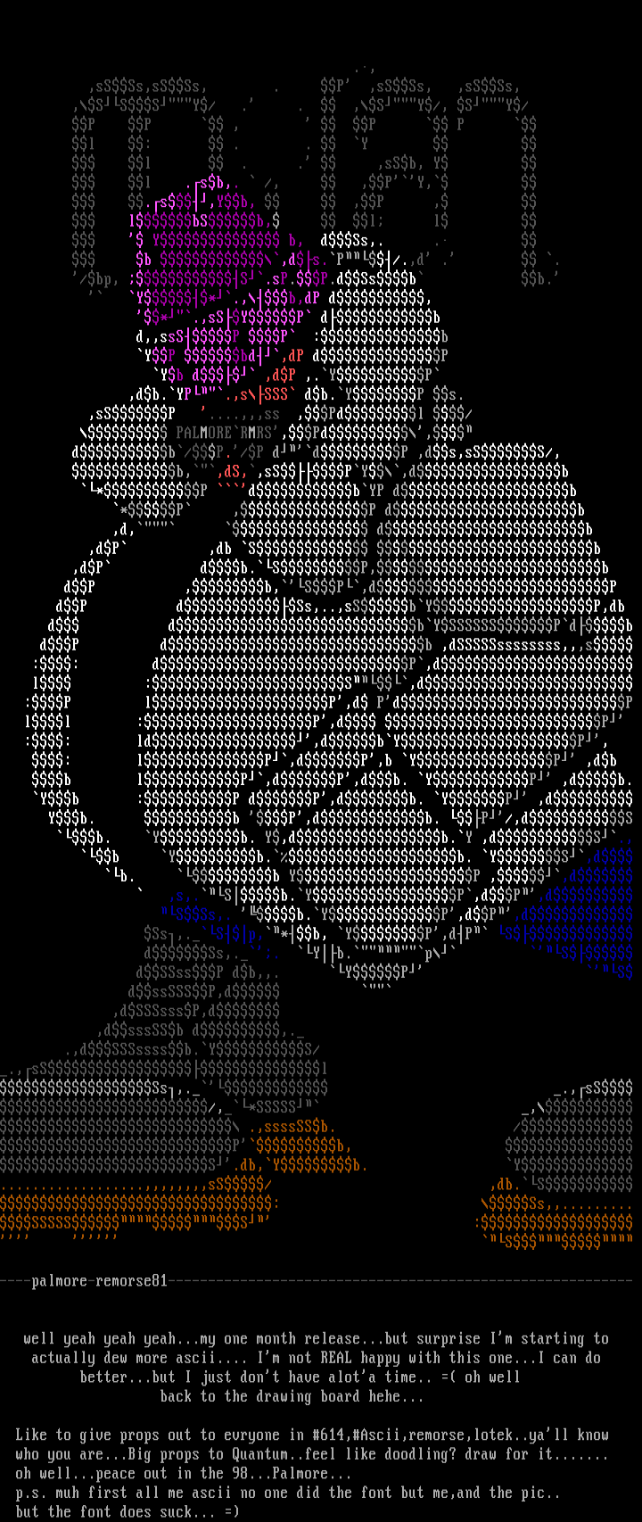 p.s. muh first all me ascii no one did the font but me,and the pic..