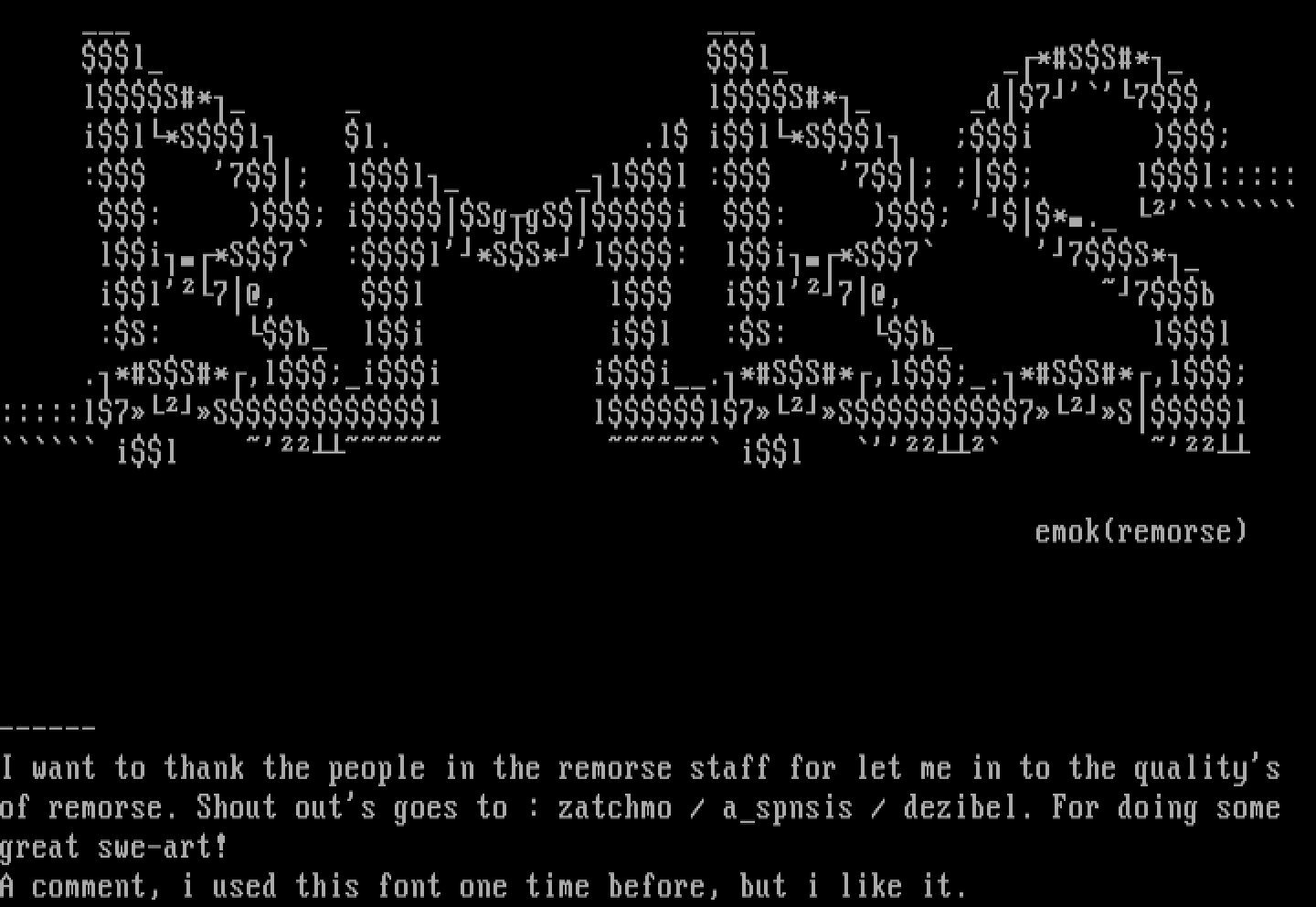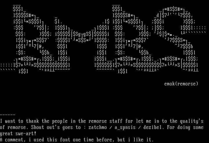 of remorse. Shout outs goes to : zatchmo / aspnsis / dezibel. For doing some