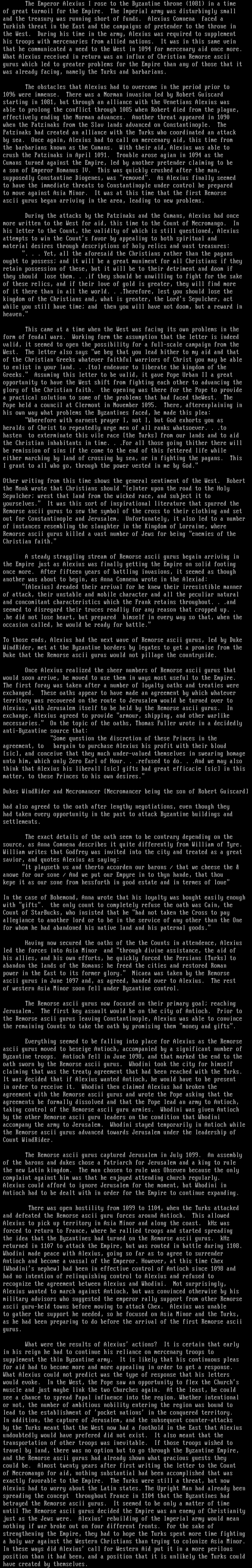 the Empire just as Alexius was finally getting the Empire on solid footing