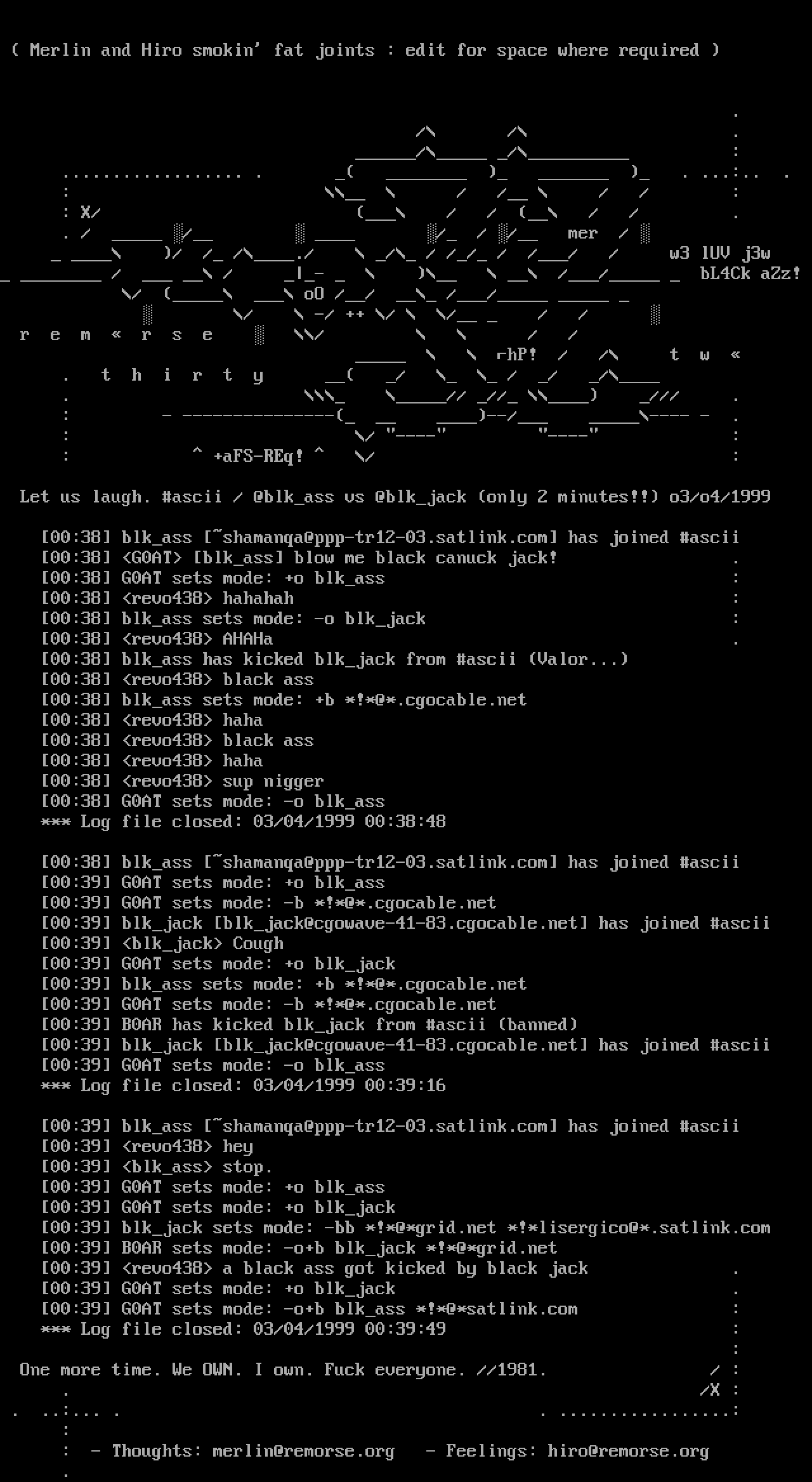 Let us laugh. ascii / @blkass vs @blkjack only 2 minutes!! o3/o4/1999