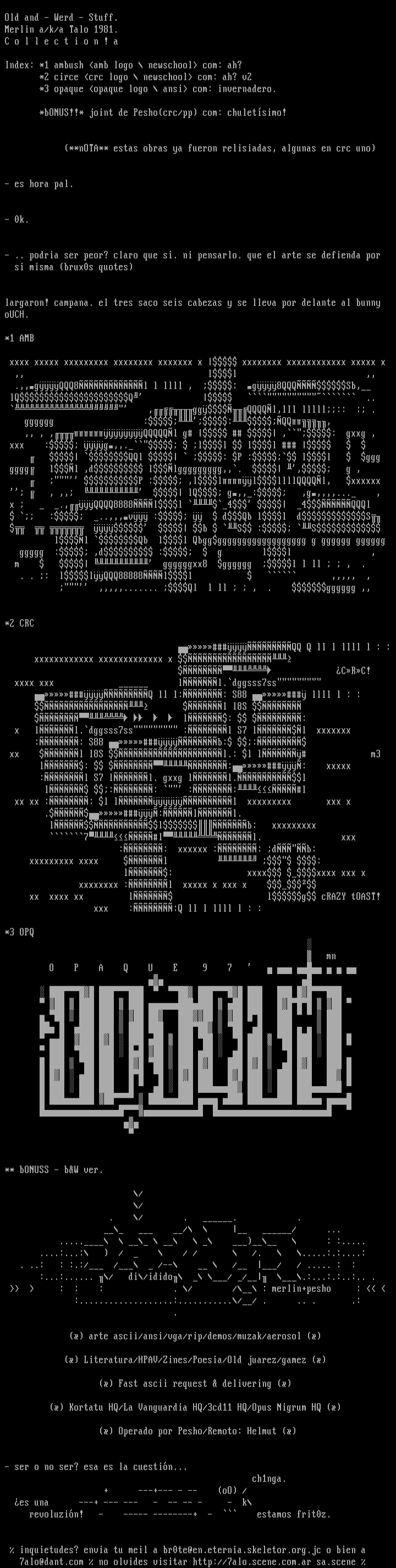 arte ascii/ansi/vga/rip/demos/muzak/aerosol